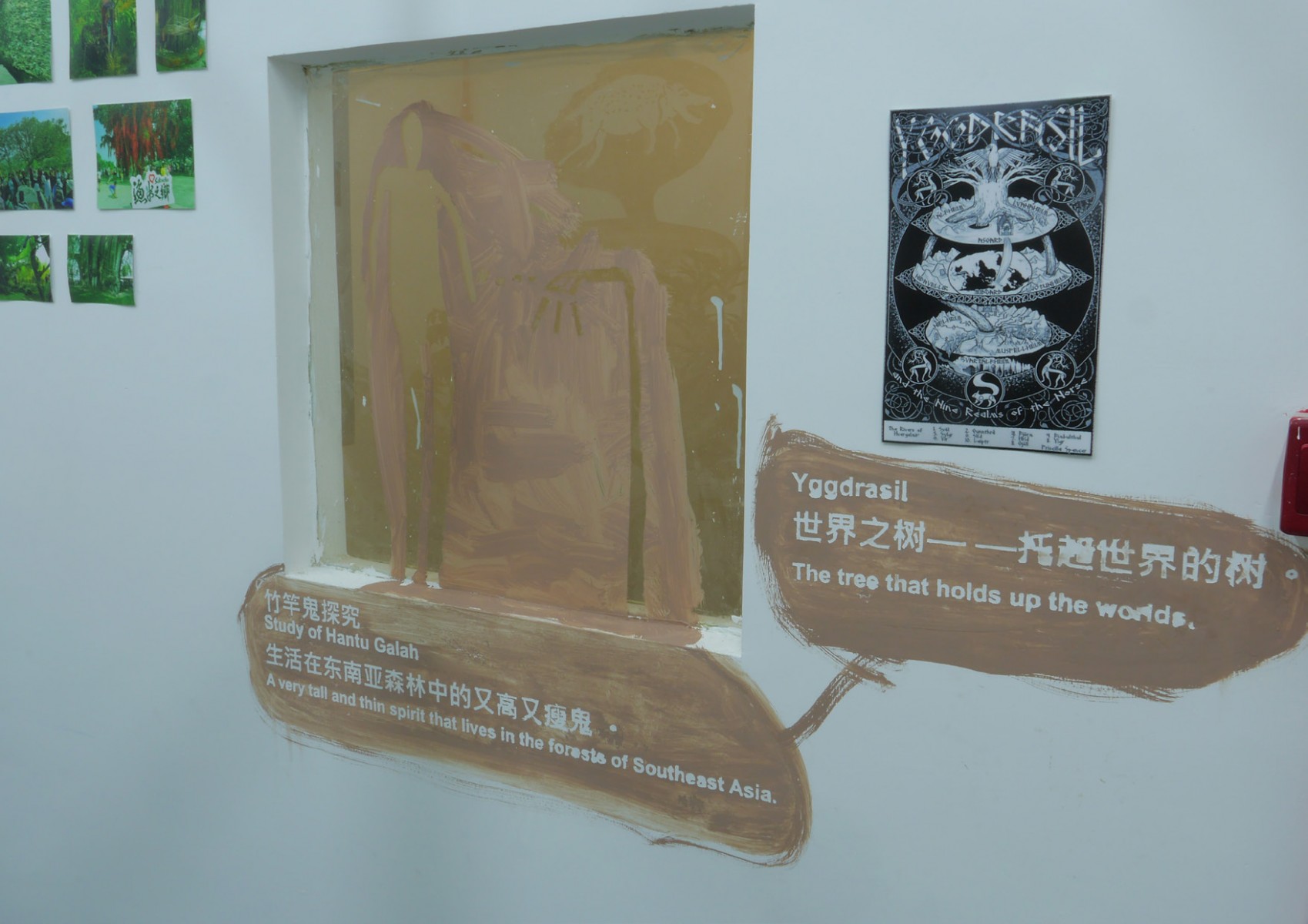 Materials: Tree Saplings, Toys, Clay, UV Lights, Photographs, Printed Documents, Tree Branches, Leaves, Tree Root, Video